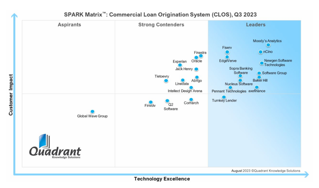 Challengers such as Baker Hill and Axefinance showed upward momentum. Baker Hill’s use of generative AI for credit memos resonated with regional banks, but a broader global reach is pending. Axefinance delivered dynamic scoring and omnichannel origination, though voice-activated features remain at an early stage. Jack Henry invested in AI models for credit assessment, but must better harmonize its user interface to keep pace with rivals.