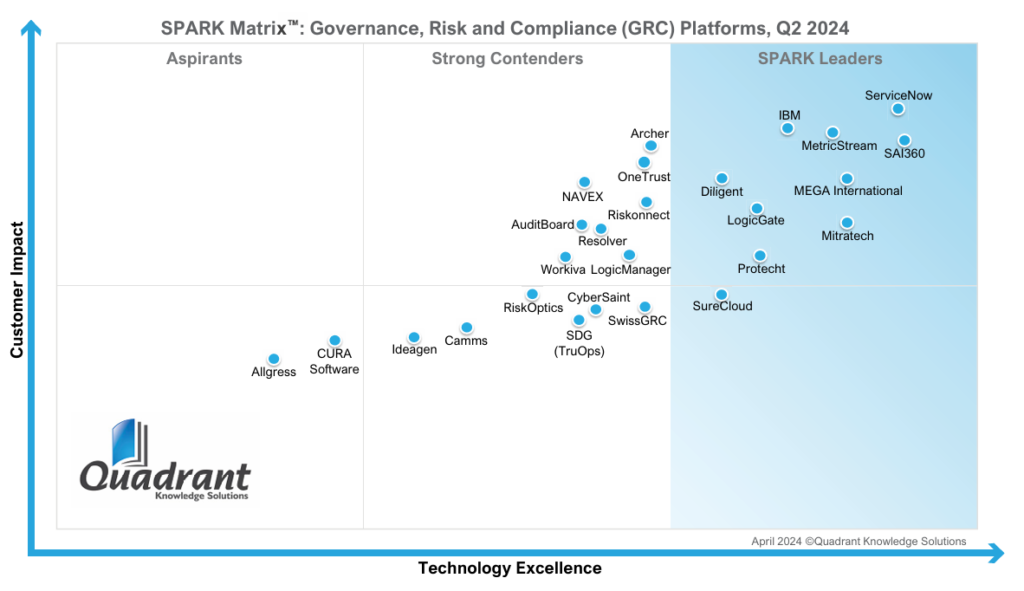 The SPARK Matrix™ for GRC Platforms, published by QKS Group, captures this transformation in sharp relief. A comparison of the 2023 and 2024 editions reveals a market reshaped by AI-driven risk analysis, cyber-risk quantification, and low-code automation. Some vendors consolidated their dominance, while others ascended rapidly by aligning their platforms with GenAI, ESG, and integrated risk orchestration. A few, however, lost ground as innovation fatigue set in.
